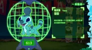 Имеет шерсть бирюзового оттенка, огромный рог формы улитки и синим цветом, три пары лап, светлый живот, длинный хвост с синими полосками. Он отдаленно напоминает мышь смешанную с лабрадором, ящерицей и енотом.