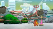 Его функция - превращение всего окружающего в исходное и старое состояние. Вещи (такие как одежда и машины) становятся ужасно примитивными, а живые существа (например, слоны и люди) в древние экземпляры. Для превращения объекта в изначальный он должен схватить его языком и сжать. Антидот - скрутить объект языком и сделать подзатыльник образцу.