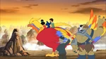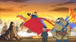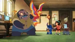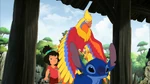 After receiving the ancient scrolls, Jumba was inspired to create a genetic experiment based on the Chinese mythical creatures that were in the scroll. This time, Jumba decided to create a fenghuang to find the shrine Stitch was looking for. He created a small phoenix, but it quickly grew and flew away. Later, he was hunted by alien bounty hunters Noo-Bing and Zi. However, Stitch and Ai manage to find and protect the phoenix from the two hunters. In the end, the phoenix leads them to a temple that, although it is not the shrine Stitch is looking for, has a painting on its grounds that prophesizes Stitch transforming into a huge monster. He was later sent to a parallel dimension inhabited by various mythological creatures.