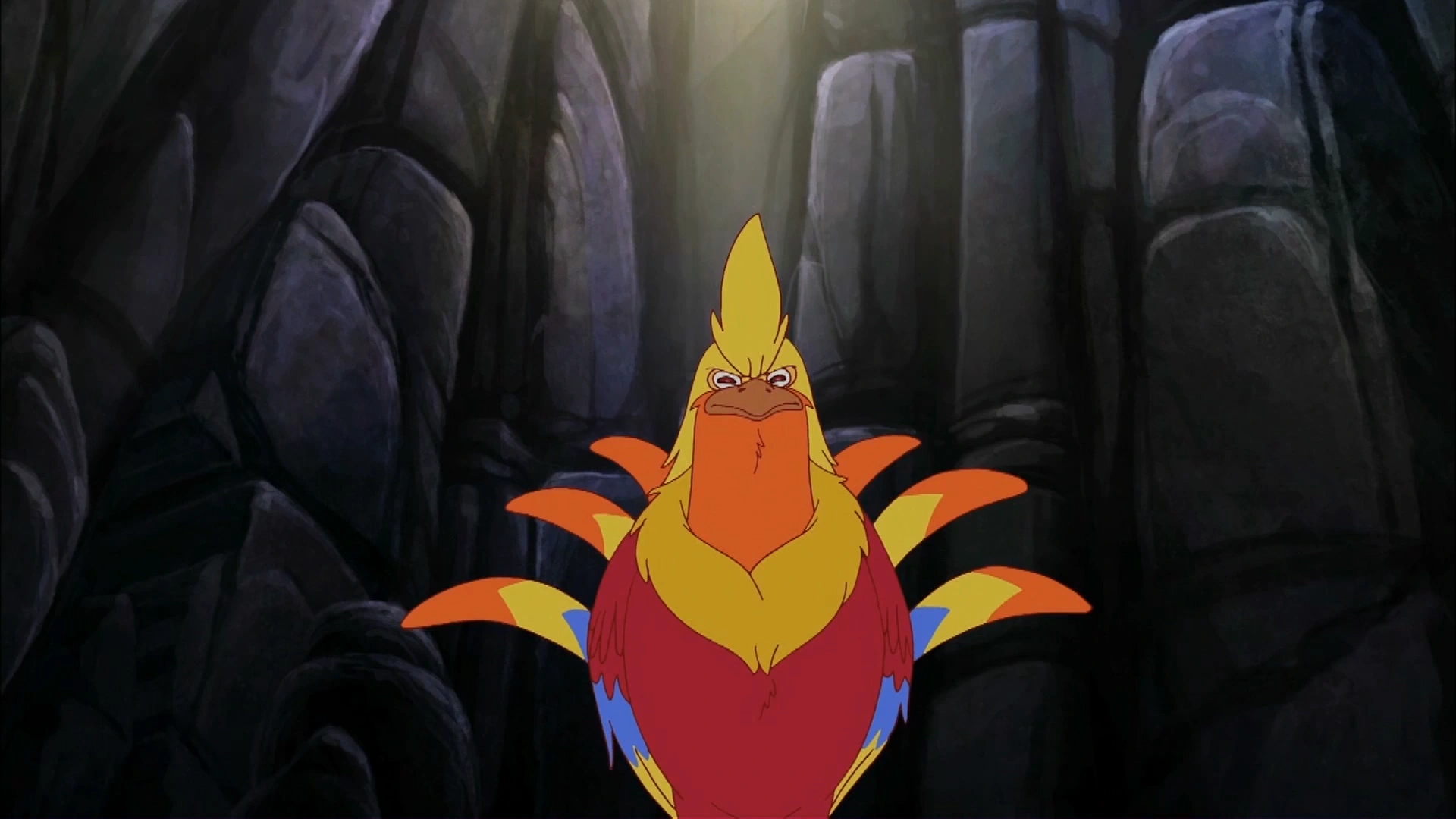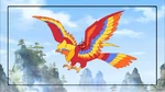 The fenghuang is a large bird, though he was initially created small. It has five plumage colors that symbolize the five virtues. It has feathered wings, a beak, and a crest, as well as a cockerel-like tail.
